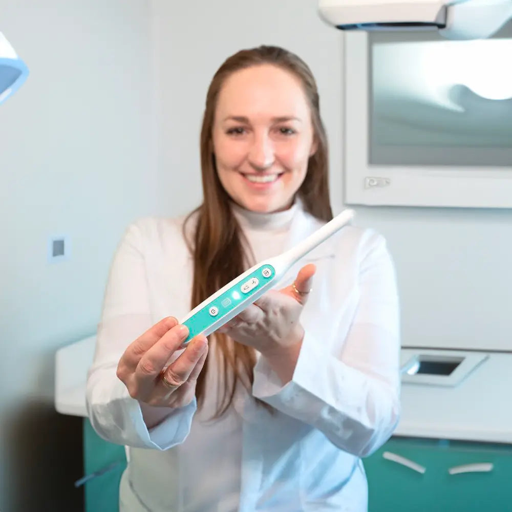 Usando la aplicación, la cámara intraoral se conecta a tu dispositivo a través de Wifi.