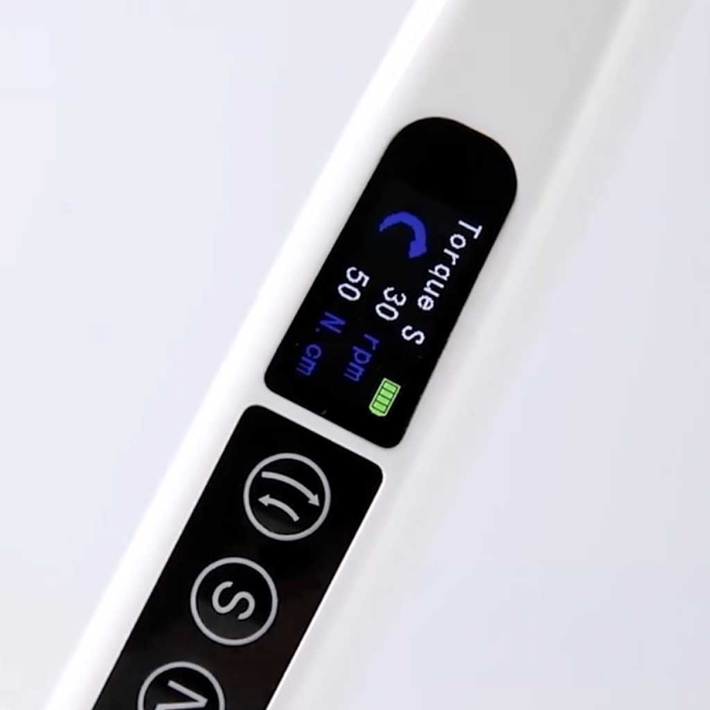 Con un rango ajustable de 10 a 50 N.cm y un control total de baja velocidad entre 10 y 50 rpm, asegura la máxima protección en cada procedimiento. Su diseño inalámbrico proporciona libertad total de movimiento en el campo operatorio, mientras que su compatibilidad universal, gracias a las 16 puntas (drivers) incluidas, lo hace apto para las marcas de implantes más utilizadas del mercado.