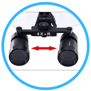 Lentes de vidrio con ampliaciones de 4x con distancia focal de 28-38cm centímetros.