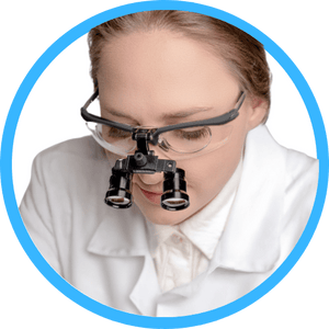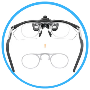 Lentes de vidrio con ampliación de 2,5x y 3,5x, además de distancias focales de 25 a 55 centímetros. ¡Con los lentes binoculares ya no necesitarás estar tan cerca de su paciente!